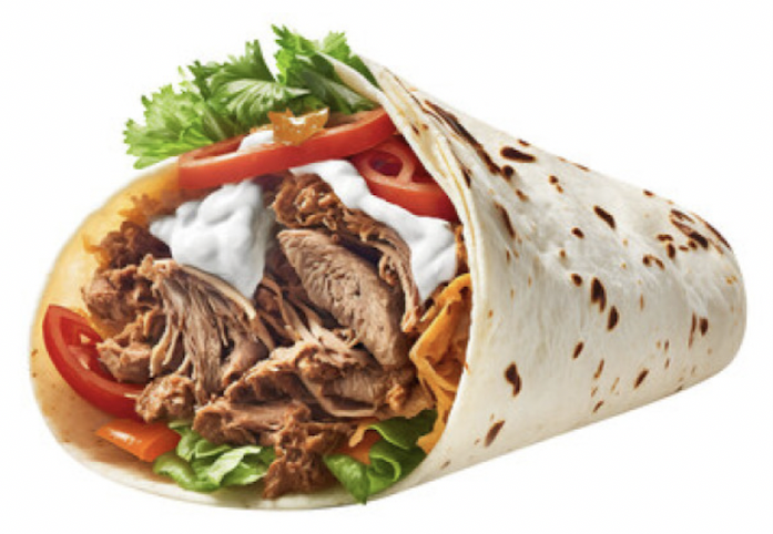 4-Durum mexicano (protíena,arroz,pico de gallo, frijoles,salsa verde, picante y crema agria)